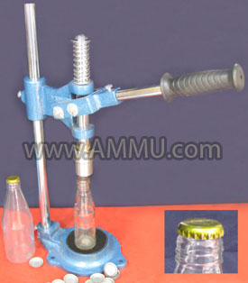 Working : Place the bottle on the rubber platform. Place the crown-cap on the magnetic holder. Pull down the hand lever and crimping will take place.