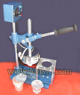 Working : Place the plastic cup in cup-holder and heat seal over the cup. Slide the holder beneath the heating plate. Pull the hand lever to perform sealing.